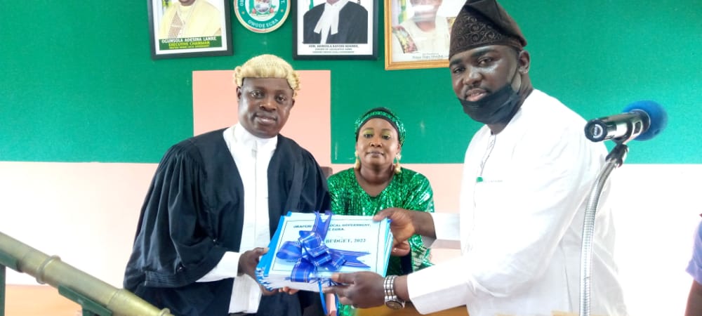 The Executive Chairman, Obafemi Owode Local Government, Amb. Ogunsola Adesina Lanre, on Thursday presented the year 2022 Budgets to the Legislative Council, tagged " Budget of Securing Our Future Together".